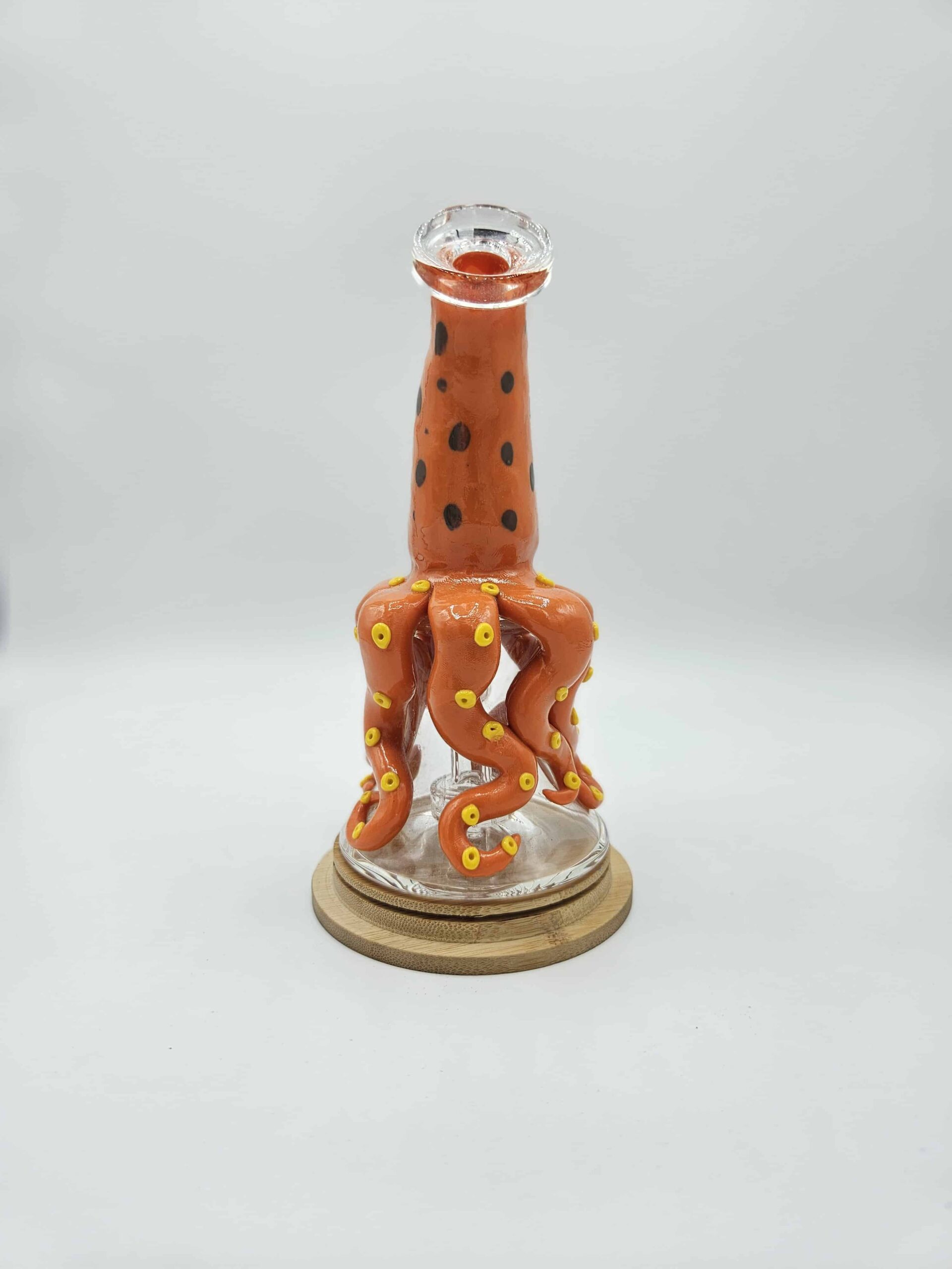 Ce bang en verre est entièrement fait main, chaque pièce étant unique par ses finitions et son design. Il se distingue par des détails sculptés soignés, notamment les dents et les yeux, qui sont fluorescents dans le noir, offrant un rendu visuel original et marquant. Le verre est travaillé avec précision pour allier esthétique et solidité. Il est possible d’y installer une grosse douille pour une utilisation personnalisée, celle-ci n’étant pas fournie. Un objet à la fois fonctionnel et décoratif, pensé pour les amateurs de pièces uniques.