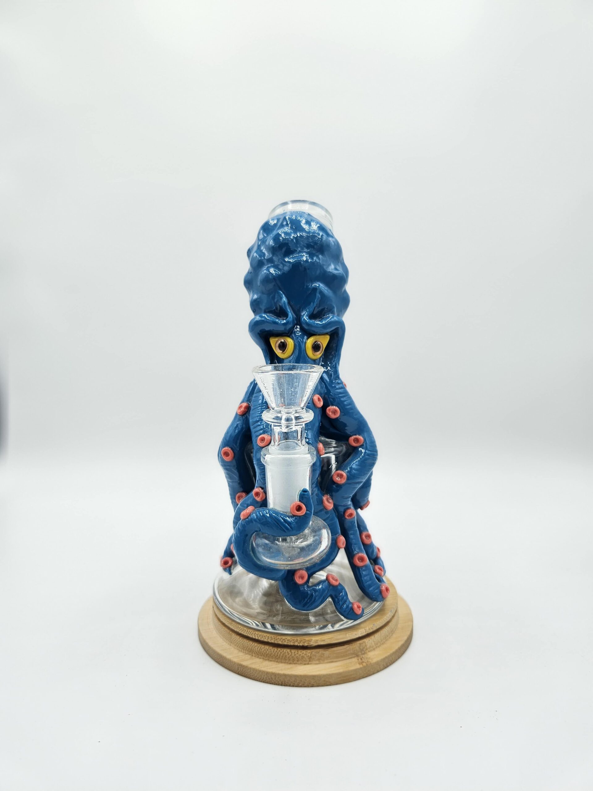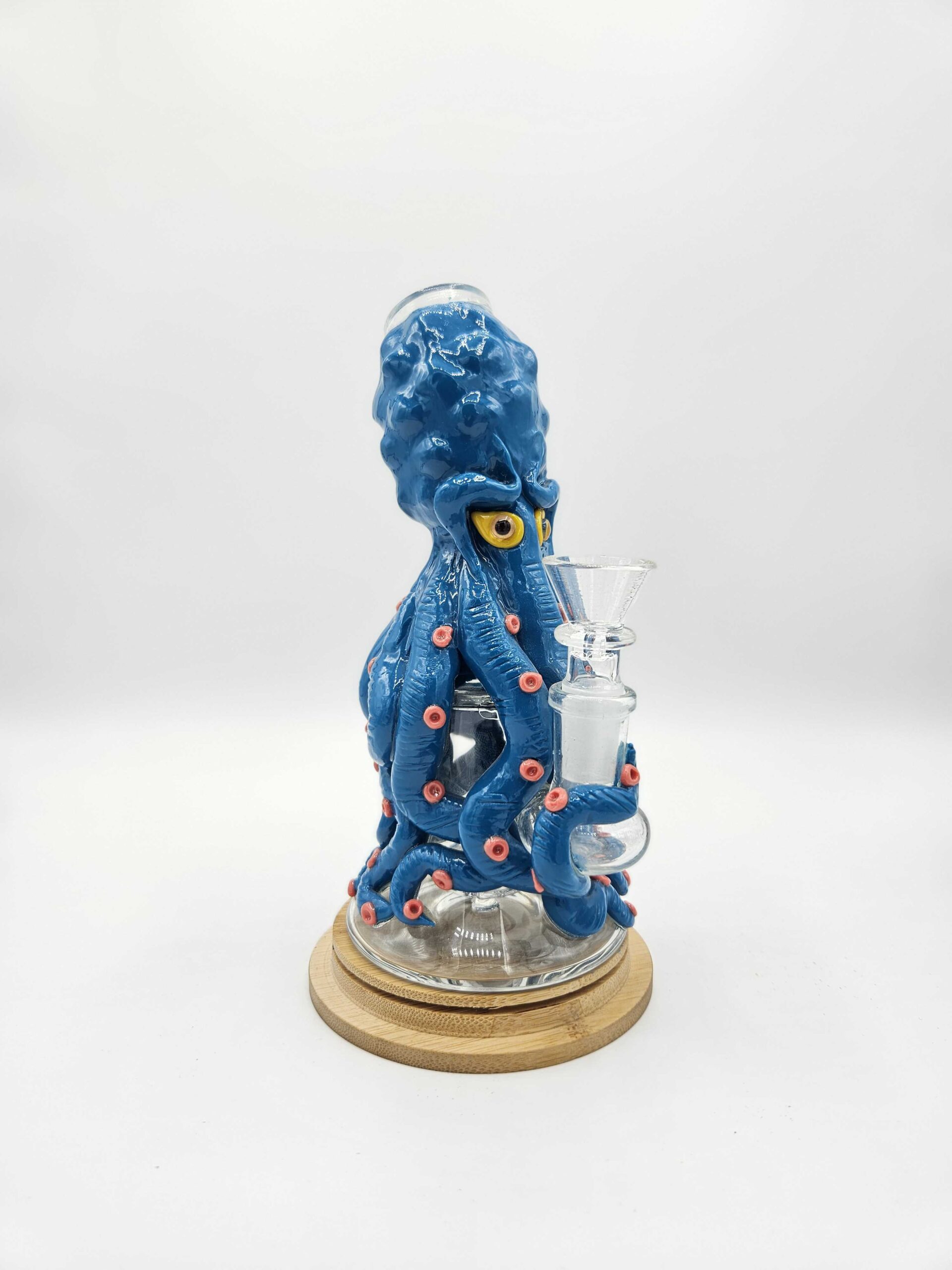 Ce bang en verre est entièrement fait main, chaque pièce étant unique par ses finitions et son design. Il se distingue par des détails sculptés soignés, notamment les dents et les yeux, qui sont fluorescents dans le noir, offrant un rendu visuel original et marquant. Le verre est travaillé avec précision pour allier esthétique et solidité. Il est possible d’y installer une grosse douille pour une utilisation personnalisée, celle-ci n’étant pas fournie. Un objet à la fois fonctionnel et décoratif, pensé pour les amateurs de pièces uniques.