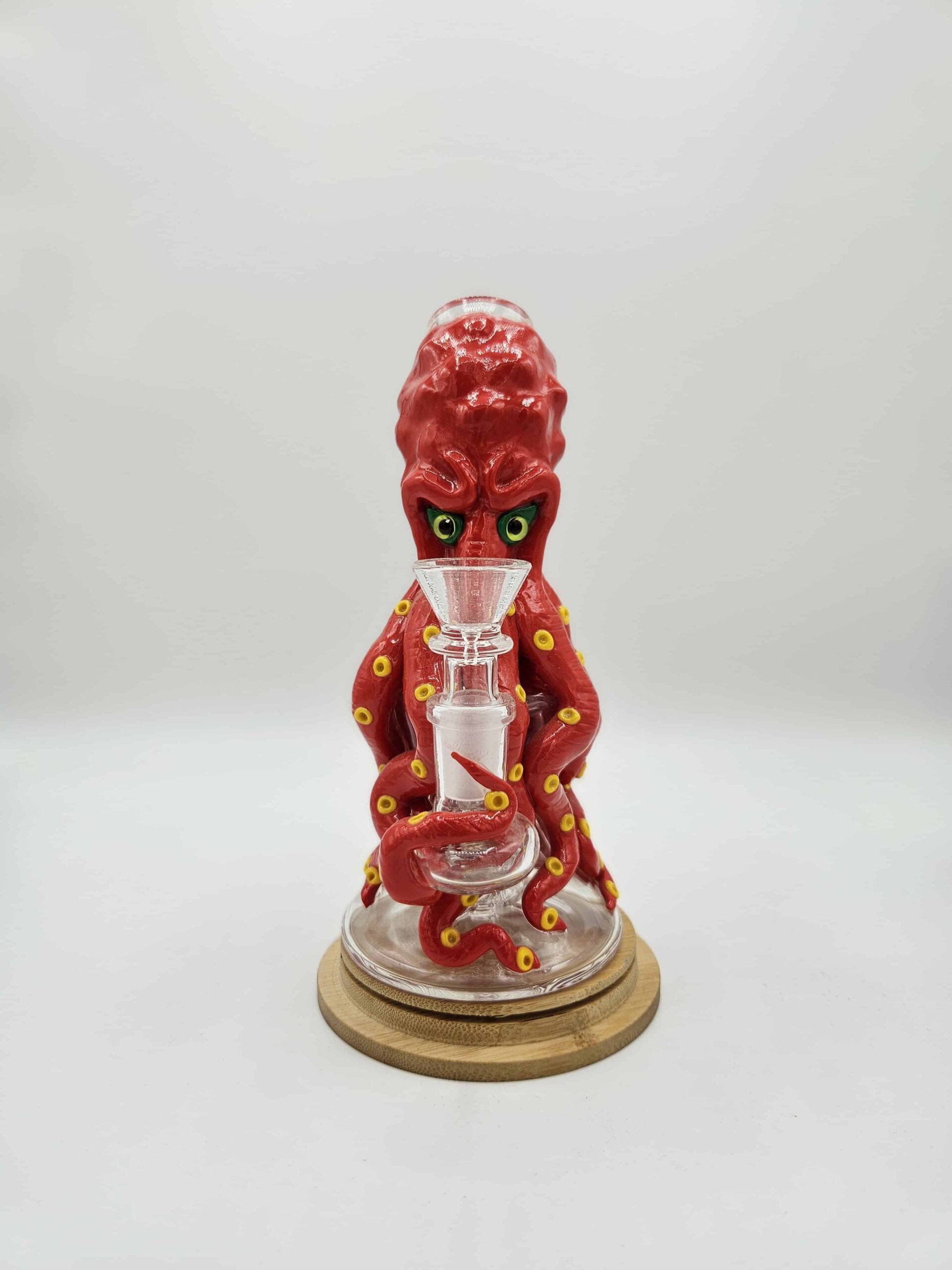 Ce bang en verre est entièrement fait main, chaque pièce étant unique par ses finitions et son design. Il se distingue par des détails sculptés soignés, notamment les dents et les yeux, qui sont fluorescents dans le noir, offrant un rendu visuel original et marquant. Le verre est travaillé avec précision pour allier esthétique et solidité. Il est possible d’y installer une grosse douille pour une utilisation personnalisée, celle-ci n’étant pas fournie. Un objet à la fois fonctionnel et décoratif, pensé pour les amateurs de pièces uniques.